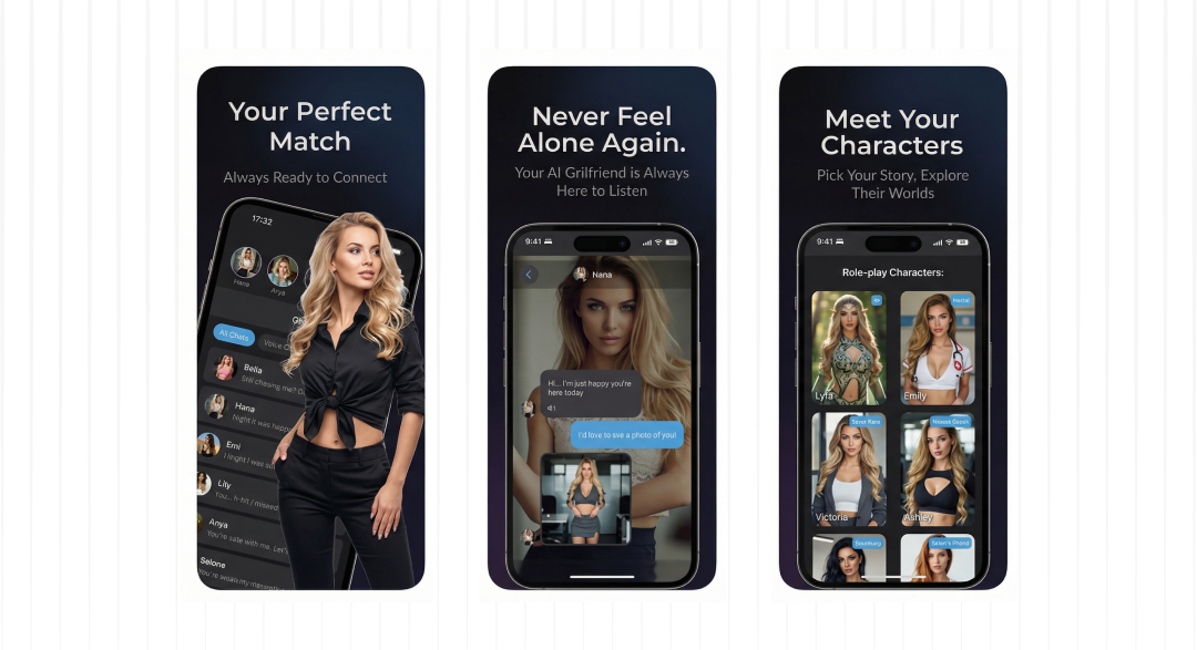 An iOS entertainment app offering virtual companionship and roleplay through AI chat. Users can choose from pre-made characters or create their own customizable girlfriend. Features include photo sharing, voice messages, and evolving conversations for an engaging experience.